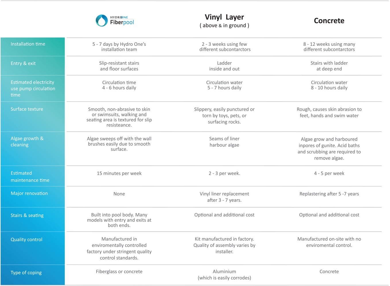 Conventional pools (including vinyl and concrete pools) require resurfacing every few years. Our fiberglass pool does not require such costly repairing, as it is durable and made to last a lifetime.