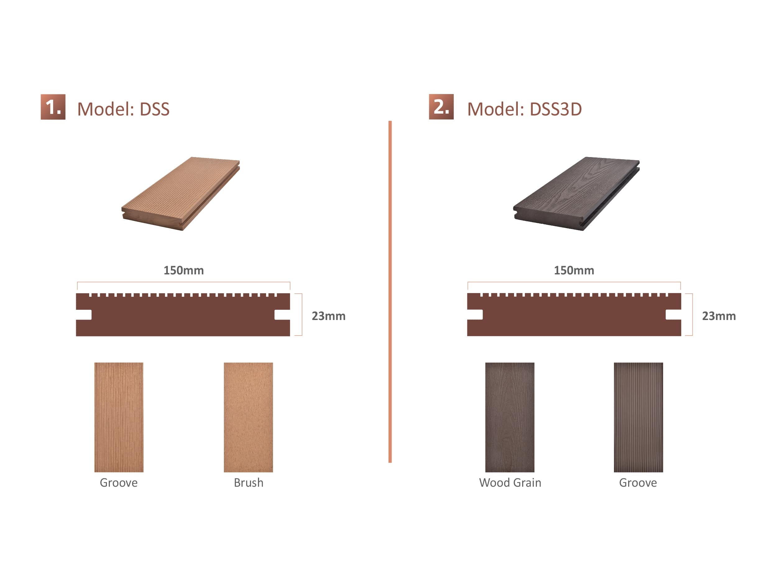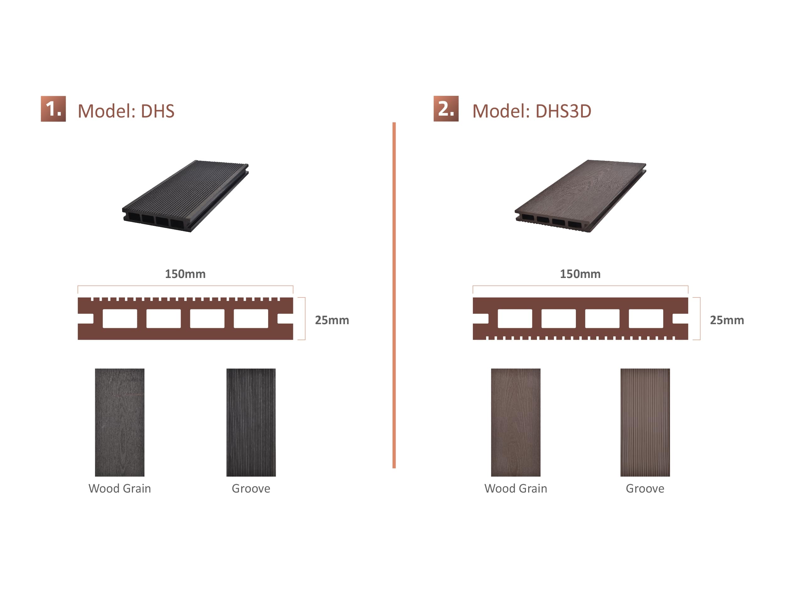 Wood Polymer Composite (WPC) is more robust and eco-friendly than traditional timber. Thanks to its versatility and high resistance to harsh environmental conditions, WPC is ideal for both outdoor and indoor wood installations, whether it be for floor decking, wall cladding, or ceiling panels.